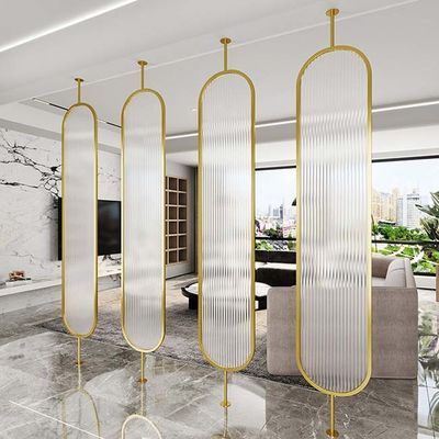 Séparation ovale d'écran d'acier inoxydable de couleur d'or de forme avec le verre de Moru