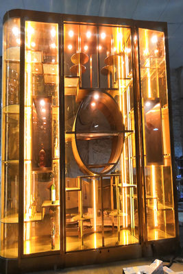 Fabrication Hôtel Restaurant Verre Armoire de rangement de vin Étagère de luxe réfrigérateur en acier inoxydable Étagère d'affichage de whisky