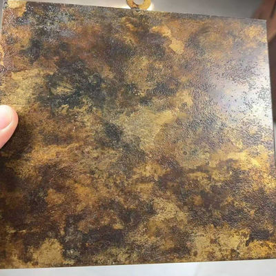 Des solutions acides spécifiques, des solutions alcalines ou d'autres agents chimiques sont utilisés pour traiter la surface de la plaque en acier inoxydable,provoquant un effet de corrosion pour simuler les traces d'années d'érosionPar exemple, une corrosion appropriée avec une solution d'acide chlorhydrique dilué peut créer un effet de corrosion irrégulier et tacheté.