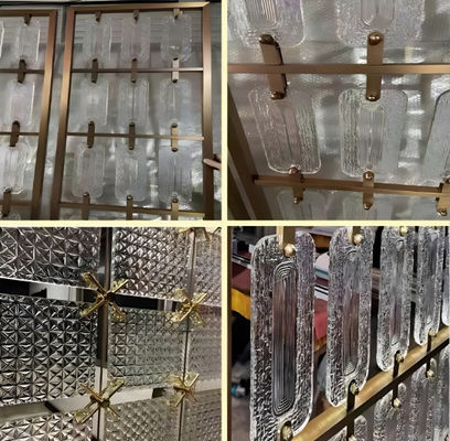 Couleur or ligne de cheveux brossé miroir verre insert mélange 304 en acier inoxydable diviseurs de pièce écran partition 0
